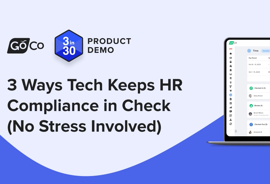 GoCo's 3 in 30 Webinar Series gives pros like you insight on how HR tech can change the way they track, manage, organize, and execute day-to-day tasks by highlighting 3 GoCo feature benefits in 30 minutes or less.